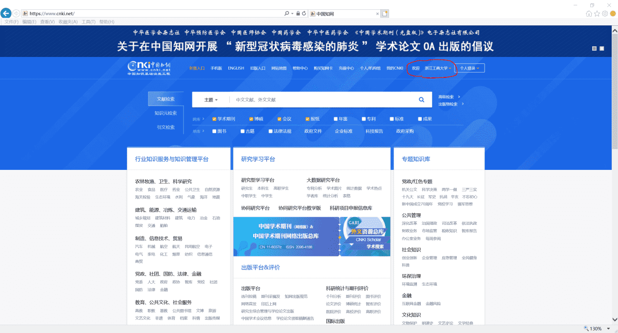 注意:使用前需要先注册个人账号、进行登录;并且第一次使用时,需要先在校园内网环境下进行“机构关联-IP关联”,才能关联上浙江工商大学的机构账号,进而可以使用。