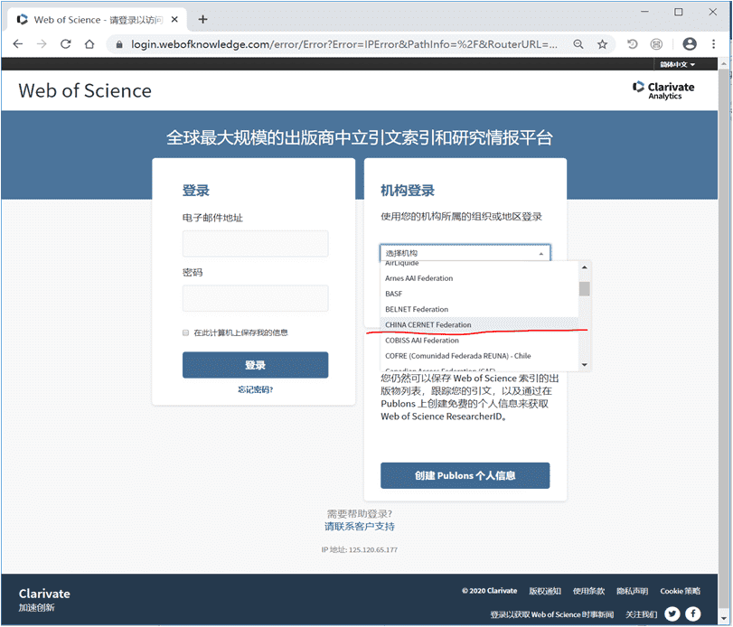 选择机构:【CHINA CERNET Federation】,并按【转到】