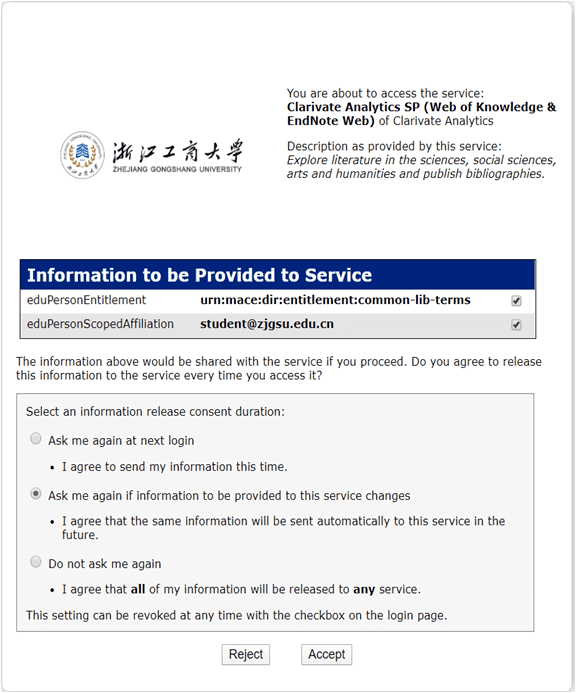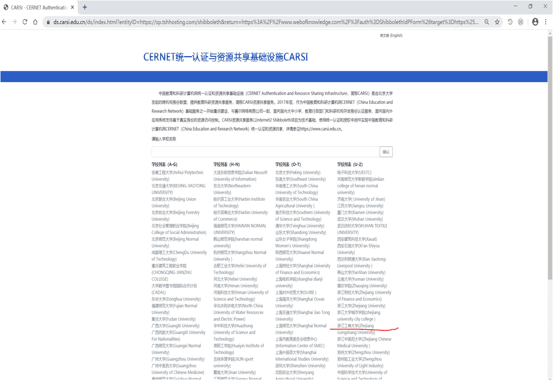 3. 根据提示注册个人帐号,绑定到“Zhejiang Gongshang University”;