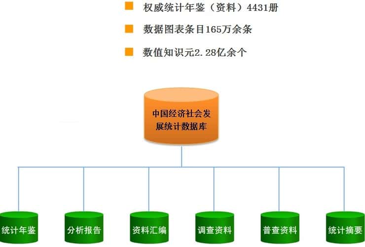 CNKI《中国经济社会大数据研究平台》完整收录了建国以来我国已出版发行的708种权威统计资料。其中,仍在连续出版的统计年鉴资料有150多种,内容覆盖国民经济核算、固定资产投资、人口与人力资源、人民生活与物价、各类企事业单位、财政金融、自然资源、能源与环境、政法与公共管理、农民农业和农村、工业、建筑房产、交通邮电信息产业、国内贸易与对外经济、旅游餐饮、教育科技、文化体育、医药卫生等行业领域,是我国最大的官方统计资料集合总库。截至目前,全库共有中央、各省市官方统计年鉴(资料)4431余册,数据图表条目165万余条,共计数值知识元2.28亿余个。
