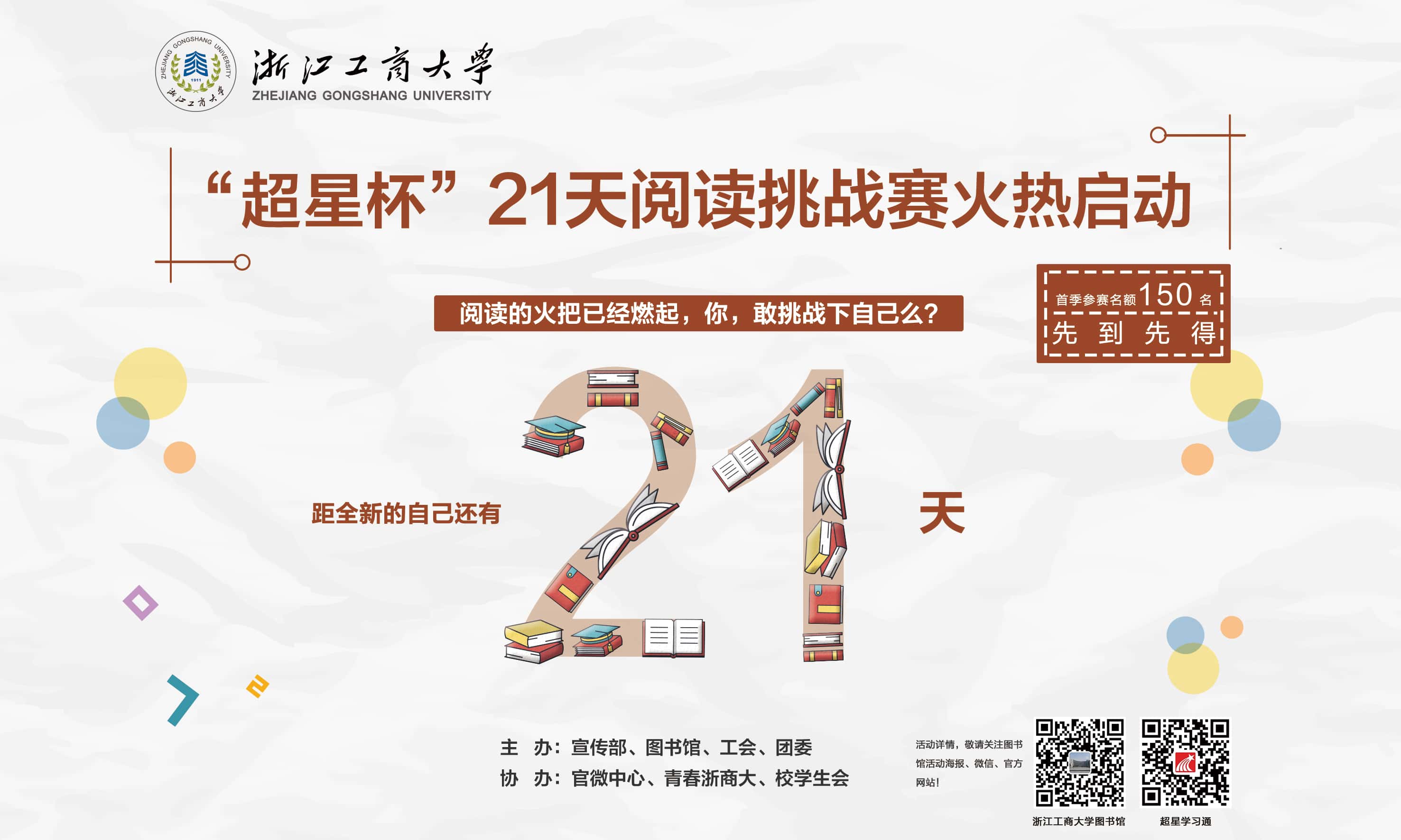 阅读,看似一项简单的行动,却很难坚持,据心理学家研究,一个简单的行为,如果能坚持重复21天以上,就会形成习惯,为了在学校营造良好的学习氛围,图书馆联合、宣传部、工会、团委多个部门,联袂推出“超星杯”21阅读挑战赛。