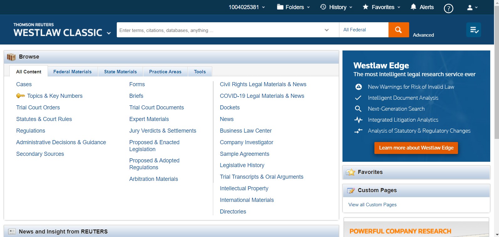 Thomson Reuters Westlaw是汤森路透依托业界值得信赖的专家和核心法律研究工具,为法律工作者创建的新一代、一站式法律信息检索平台。以权威的英美法国家原始法律资料,以及首屈一指的二次法律资料为基础,独家研发的世界顶尖的WestSearch的法律搜索引擎,倍受英美法国家法律研究人员推崇的Key Number系统,Headnote判例摘要,KeyCite分析工具,这些产品将为您提供最好的法律检索188宝金博 苹果app 。