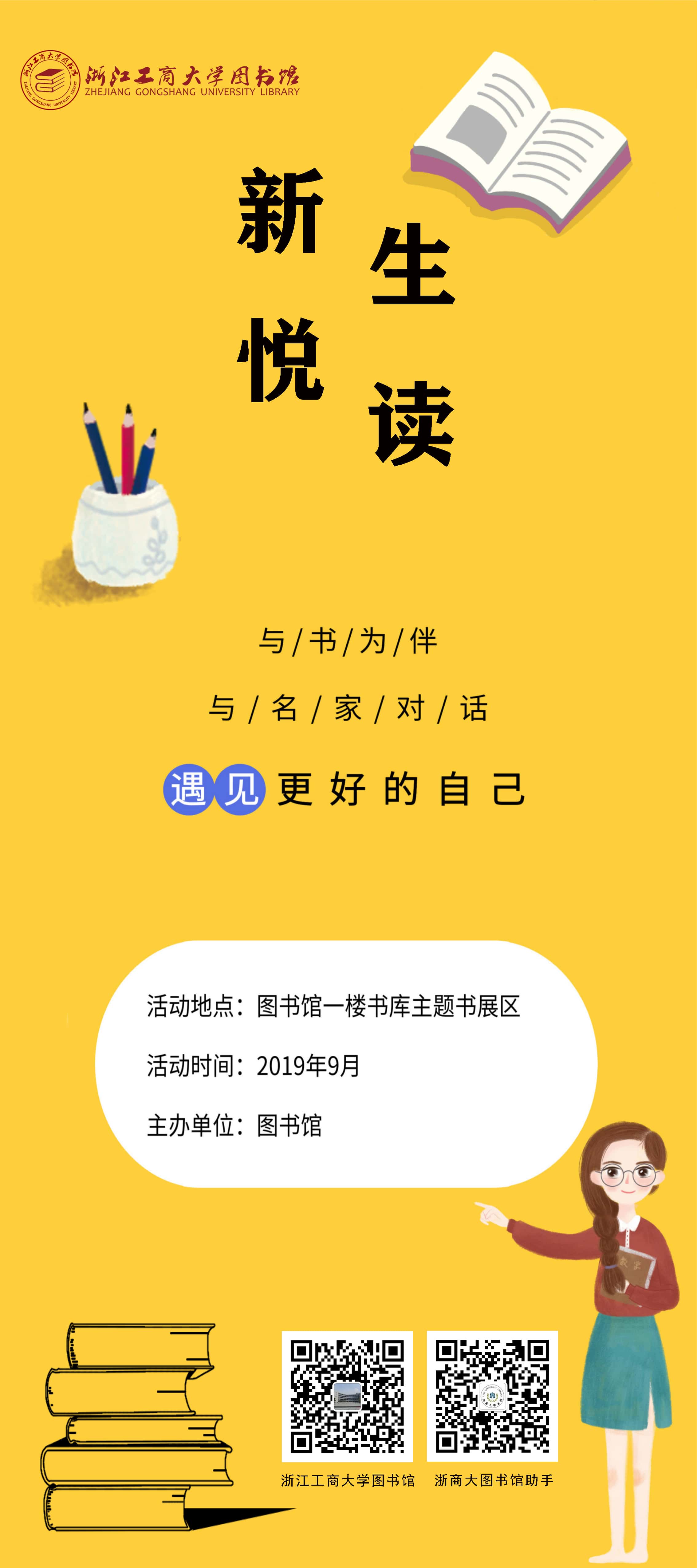 为了迎接2019级浙小商,帮助同学们更好地融入新的学习、生活环境,图书馆特举办此次“新生悦读”主题书展。希望同学们能以一本好书作为大学生活的开端,从此开启人生新的篇章。也祝愿同学们能够在浩瀚书海里,发现新的世界,找到属于自己的广阔天地。