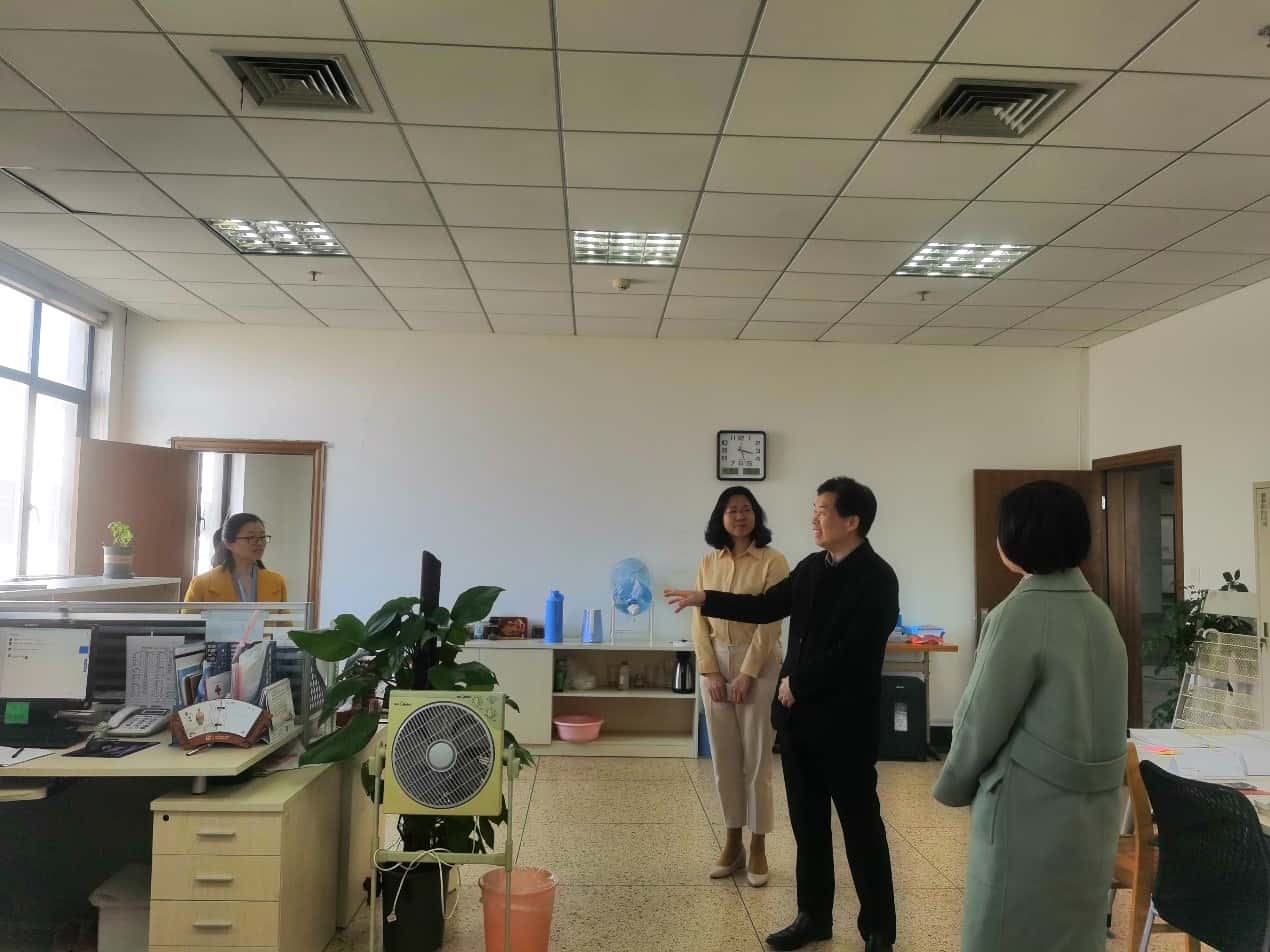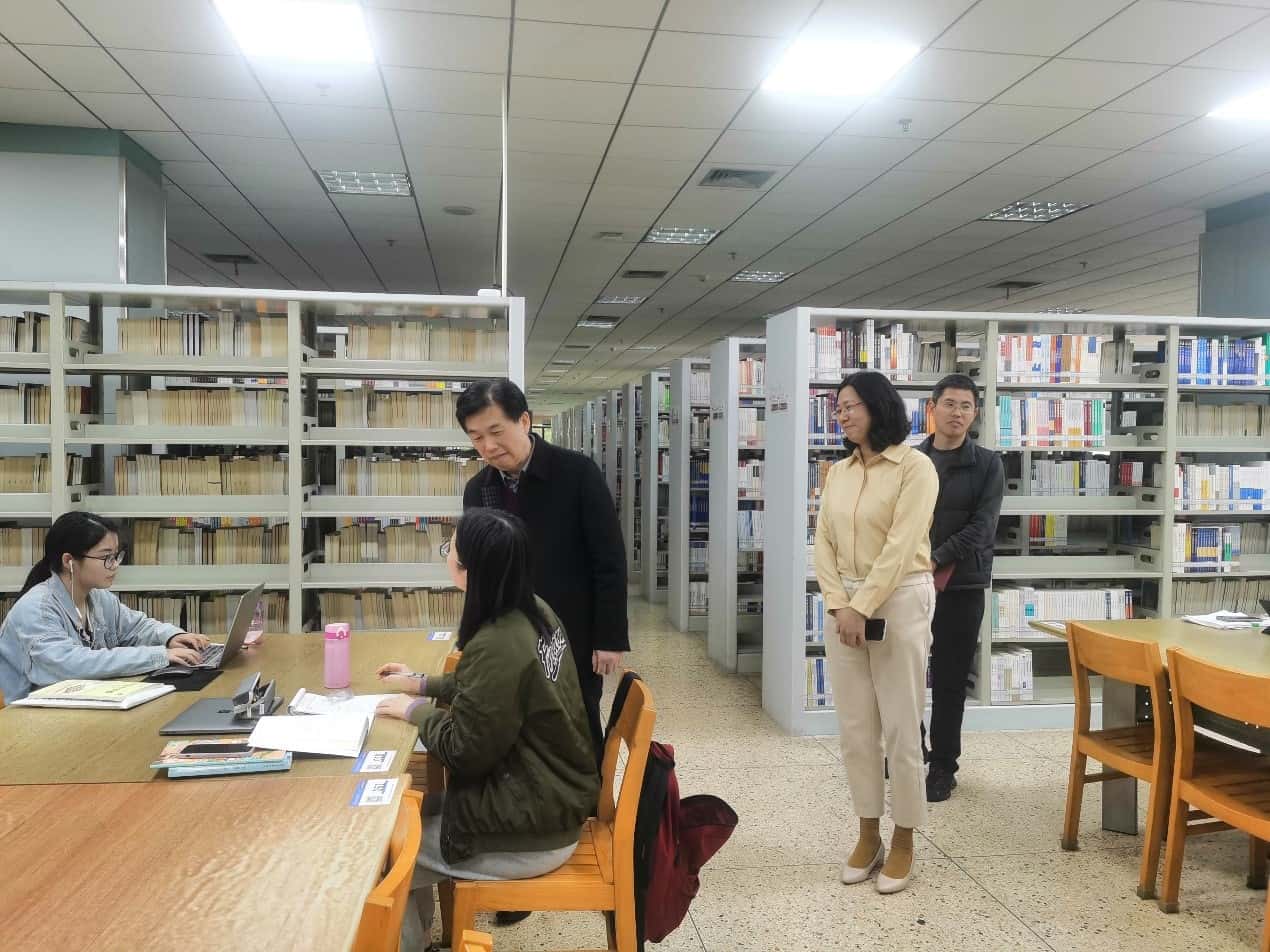 4月9日,校党委委员、纪委书记陈金方在校办公室副主任陈永春陪同下到图书馆进行调研。