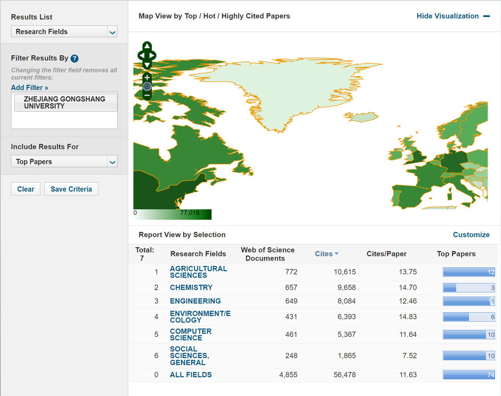 根据美国科睿唯安公司2022年7月14日发布的ESI(Essential Science Indicators)统计数据,浙江工商大学Social Sciences, General学科排名首次进入ESI全球排名前1%,成为我校第6个(前5个为Agricultural Sciences、Engineering、Computer Science、Environment/Ecology、Chemistry)进入ESI全球前1%的学科,标志着该学科已经进入国际高水平学科行列。