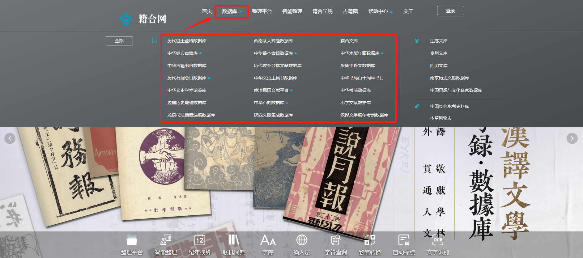 第一步:校园IP范围内登录网址www.ancientbooks.cn进入“籍合网”首页;