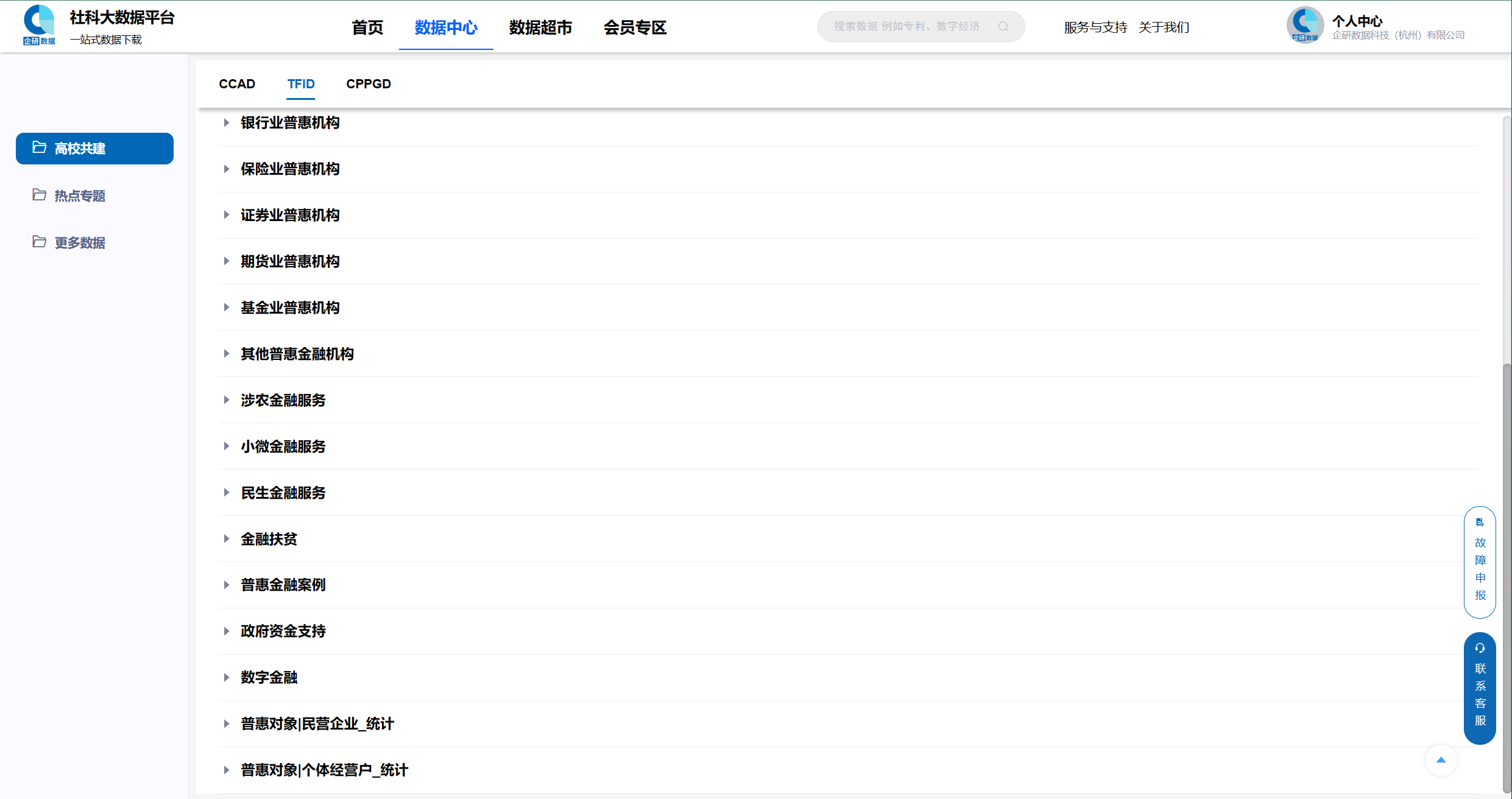 学校购买了浙商大泰隆-企研中国普惠金融数据库(TFID)和中国公共政策与绿色发展数据库(CPPGD)2个子库。