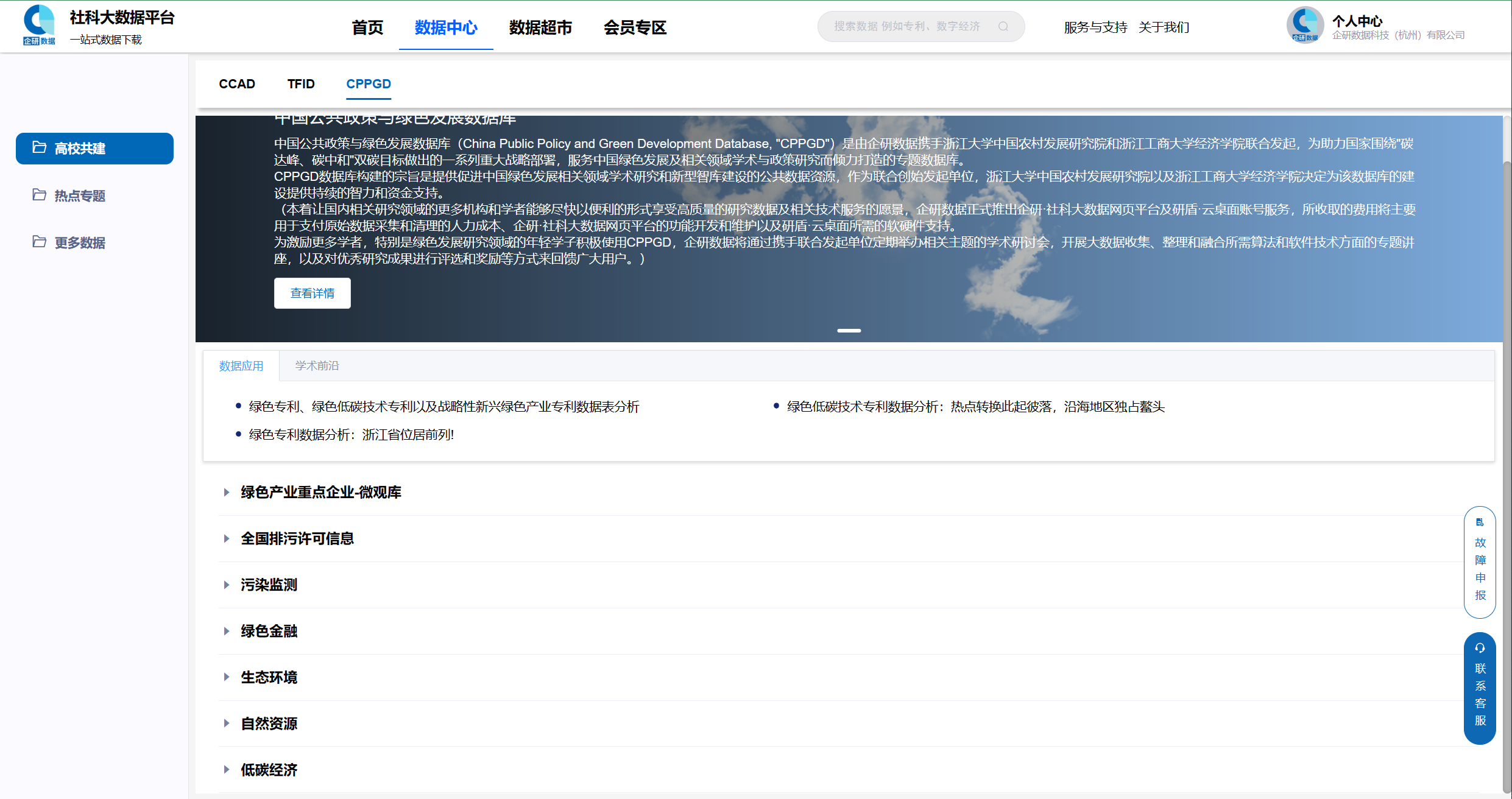 中国公共政策与绿色发展数据库(China Public Policy and Green Development Database, "CPPGD")是由企研数据携手浙江大学中国农村发展研究院和浙江工商大学经济学院联合发起,为助力国家围绕"碳达峰、碳中和"双碳目标做出的一系列重大战略部署,188宝金博 苹果app 中国绿色发展及相关领域学术与政策研究而倾力打造的专题数据库。