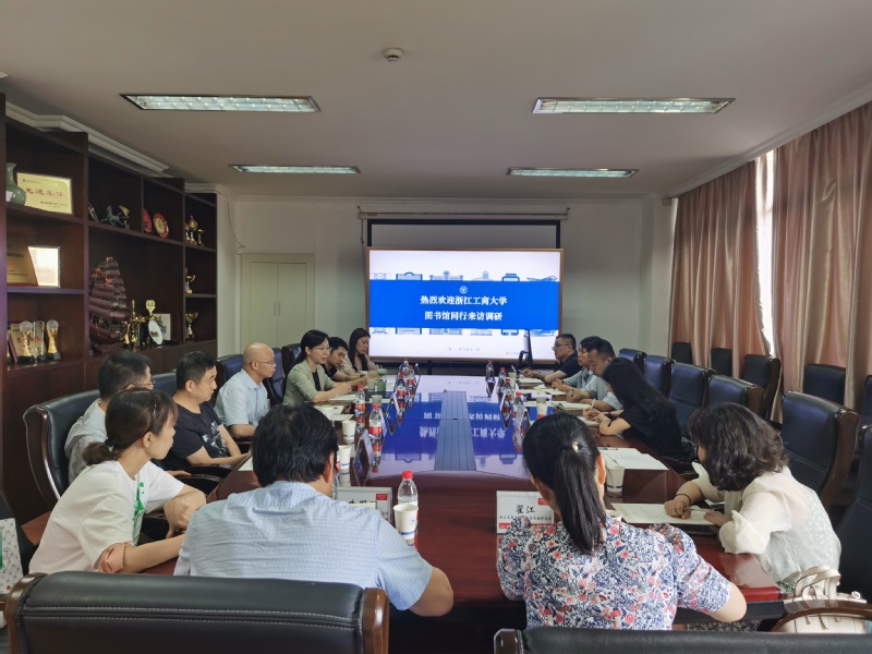 2023年6月12日下午,图书馆副馆长毛丰付、赵丹带领信息咨询部、流通阅览部、阅读推广部、采编部、技术部、特藏部负责人一行前往浙江大学图书馆玉泉分馆调研交流,浙江大学图书馆副馆长胡义镰带队接待。
