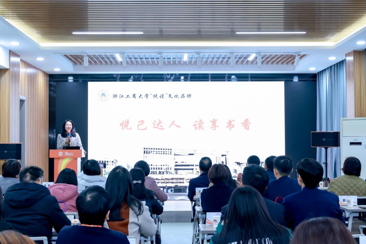 12月12日,浙江省高校教职工文化品牌建设现场会在浙江工业大学举行,浙江省总工会常务委员、二级巡视员,省教育工会主席王玉庆,省教育工会副主席李茜出席会议,48所高校工会负责人参加现场会。我校“悦读”文化品牌作为获评2021年度浙江省高校教职工文化金品牌的六家单位之一,向省教育工会及全省教育工会负责人汇报了品牌建设情况,赢得了高度评价。