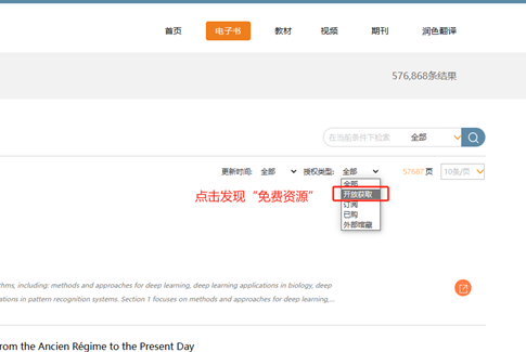 点击“授权类型”标签,即可在“开放资源”选项中,筛选出平台全部OA免费资源。