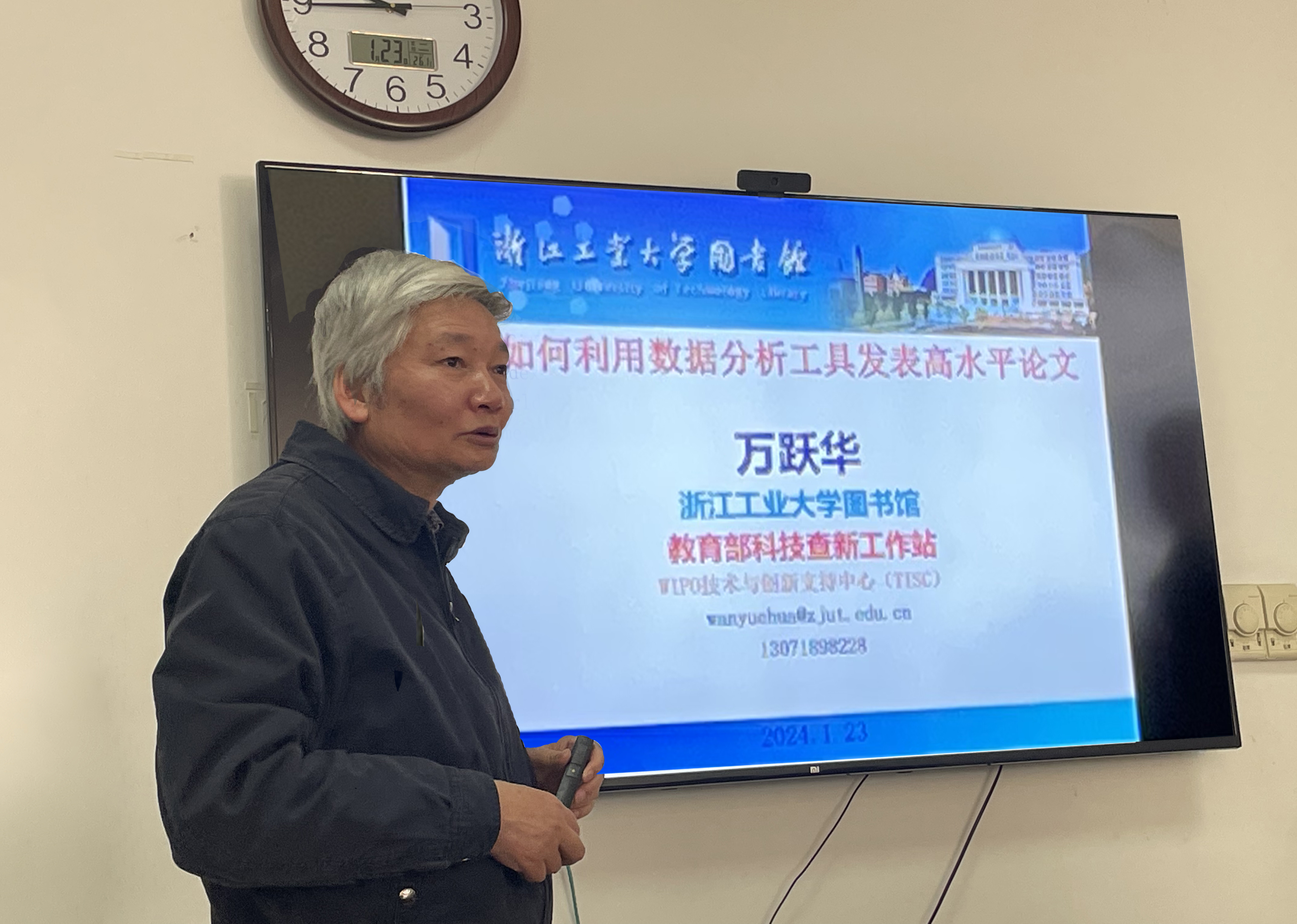 为进一步提升馆员科研水平,营造全员科研的浓厚学术氛围,积极投身“六大一号工程”建设,2024年1月23日,图书馆开展了第十期“商大·图学堂”。本次研讨的主题为“如何利用数据分析工具发表高水平论文”,特邀原浙江工业大学图书馆信息咨询部主任、信息资源研究所所长万跃华教授来馆主讲,图书馆馆长毛丰付、副馆长赵丹以及相关馆员二十余人参加了本次培训。