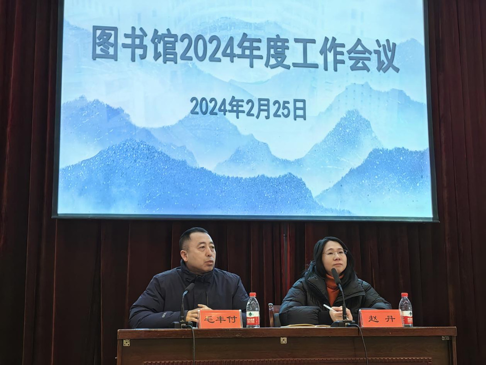 2月25日上午,图书馆召开2024年度工作会议。此次会议旨在回顾过去一年的工作成果,为新一年的工作规划提供方向。图书馆馆长毛丰付讲话,会议由副馆长赵丹主持。