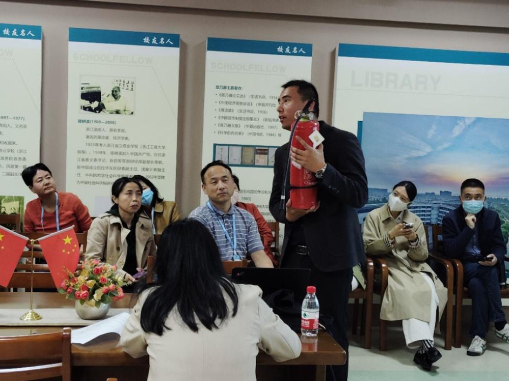 为深入贯彻落实习近平总书记关于安全生产的重要指示精神,全面落实浙江省教育厅与浙江省消防救援总队联合发布的《关于联合开展春季学校火灾疏散逃生大演练活动的通知》相关要求,提高图书馆组织人员疏散逃生和扑救初期火灾的效率,夯实师生安全保障基础,2024年3月29日,图书馆联合校保卫处成功举办了“消防应急疏散演练暨消防安全培训”活动。校党委副书记方向明亲临疏散演练现场观摩,校保卫处副处长沈建国、韩志强,图书馆副馆长赵丹全程指挥部署。图书馆全体职工、在馆读者及安保人员等近百余人参与了此次演练。