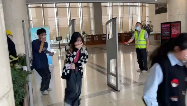下午14点,图书馆消防应急疏散演练正式启动,保卫处副处长沈建国宣布疏散演练开始,图书馆三楼模拟火情启动,馆内,工作人员迅速做出反映,报警组、灭火组、疏散组等各小组工作人员迅速就位,拉响警报,控制火情,组织师生有序疏散;馆外,消控室、移动微型消防站迅速出警;所有人员全部有序撤离至安全地带后,专家对整场消防演习进行了总结点评。