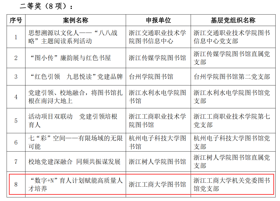 喜报丨图书馆荣获浙江省高校图书馆基层党建创新典型案例二等奖