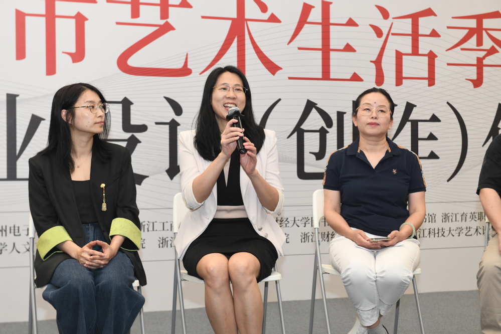 我校图书馆副馆长赵丹代表高校图书馆参与现场沙龙。她表示高校图书馆作为公共图书馆和艺术设计学院的桥梁,有责任搭建类似的平台,让更多的高质量教学科研成果反哺社会,也让更多社会资源进入高校体系,激发和提升高校的教学科研水平。最后,她对本次展览的圆满举行表示祝贺,也期待今后能继续三方协作的良好机制,让更多高质量展览走进杭州市民生活,为杭州这座艺术之都做最美的注解。