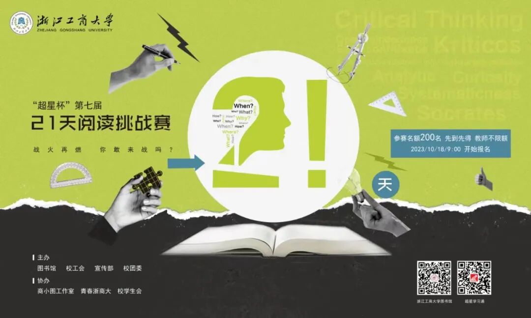 21天阅读挑战赛是图书馆于2017年起推出的阅读习惯养成项目,旨在通过21天的连续阅读以及心得分享,引导全校师生养成阅读图书的自主学习习惯。2021年,我校“悦己达人 读享书香”悦读文化品牌成为了首批六个“浙江省高校教职工文化金品牌”之一,而21天阅读挑战赛就是“悦读”文化品牌的其中一个核心活动。