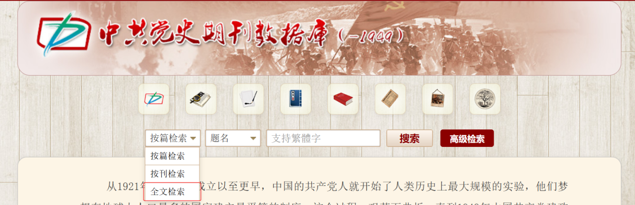《中共党史期刊数据库(-1949)》包含1949年前中国共产党创办和参与创办的刊物320余种,其中包含了《新青年》、《解放》、《斗争》、《群众》等具有代表性和历史意义的标志性刊物,党史研究价值极高。现已推出全文检索功能,欢迎读者多多访问。