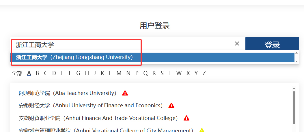 步骤3:选择浙江工商大学后会跳转到统一身份认证,填写个人账号密码即完成认证。