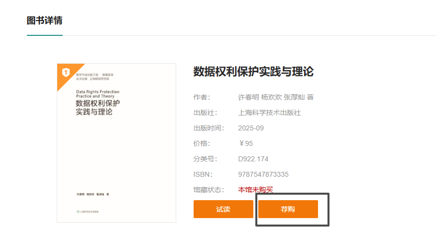 欢迎广大读者使用平台。如需荐购,请点击图书详情页“荐购”并填写相关信息。图书馆将根据馆藏结构、学科相关性、学术价值等因素综合考量是否采购。欢迎读者根据实际所需荐购。