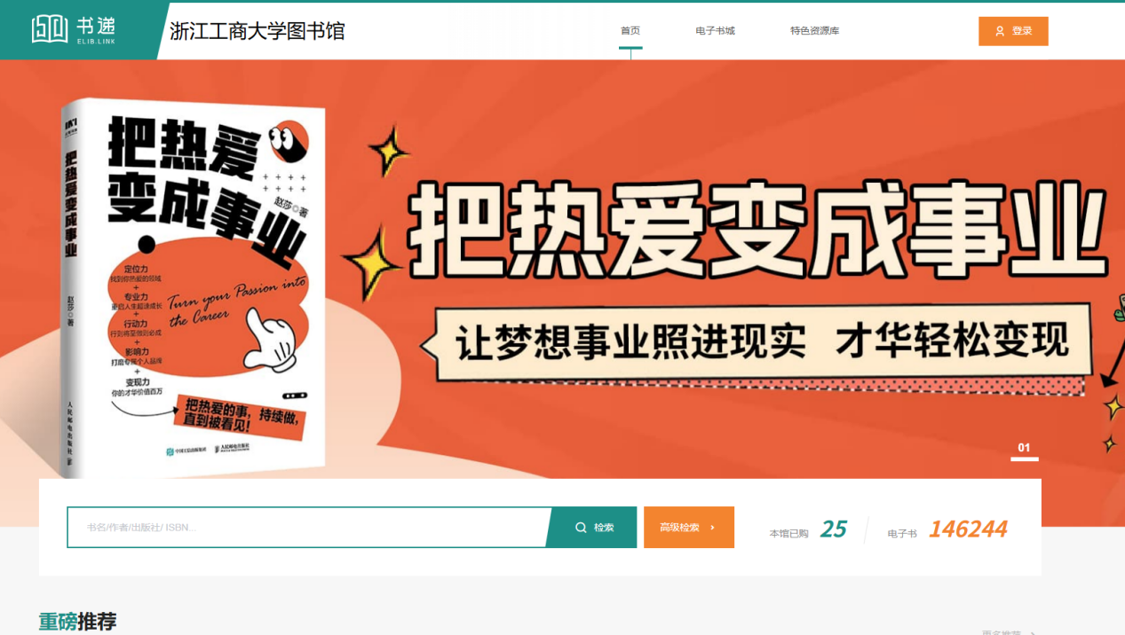 书递中文电子图书数字出版平台,是浙江大学出版社联合国内100多家知名出版社共同推出的校园阅读平台。平台汇集来自人民卫生出版社、社会科学文献出版社、人民邮电出版社、化学工业出版社、北京大学出版社、中国人民大学出版社、浙江大学出版社、上海交通大学出版社、广西师范大学出版社、中国政法大学出版社等出版的优质电子书超13万种,侧重学术类,以大社科类、文化类等作品为主,按中图法分类,聚焦近年来新出版电子图书,不定期上线最新出版电子图书。